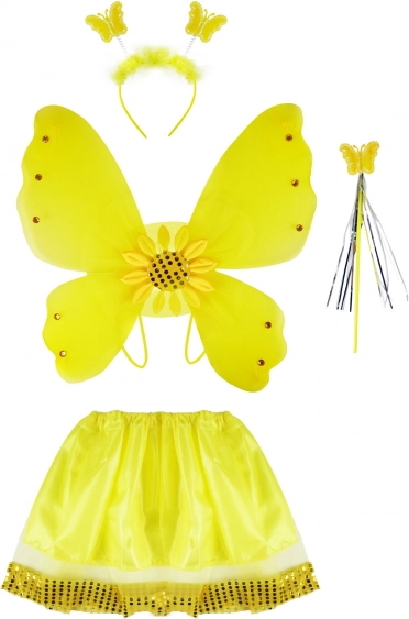 Kinderkostuum zonnebloem met vleugels, rokje en toverstaf