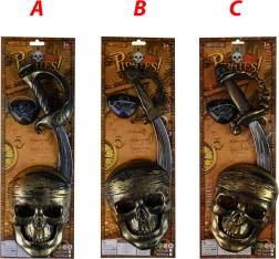 - Complete set – masker, ooglap en zwaard in bijpassende piratenstijl.