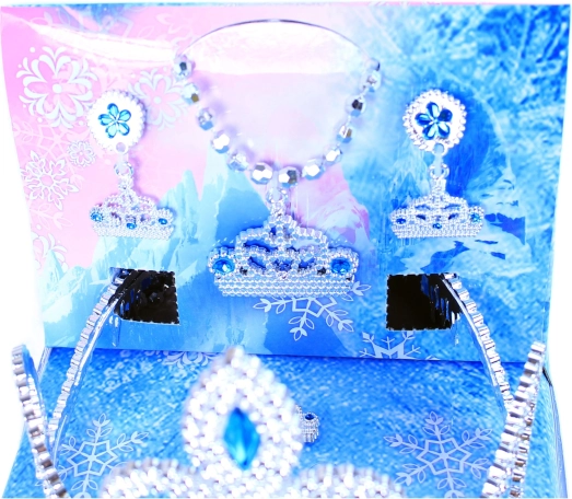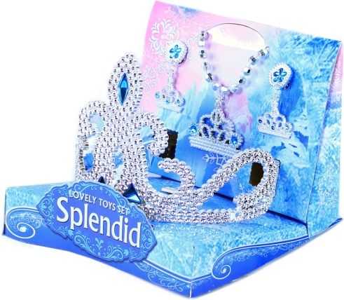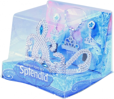 Verras je kleine prinses met deze betoverende set, inclusief een kroon, oorbellen, een ketting en een ring met blauwe decoratieve accenten.