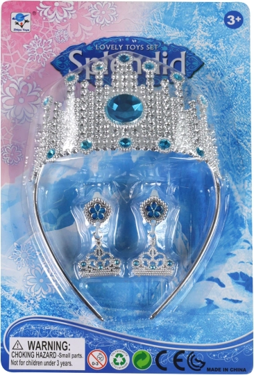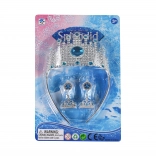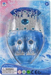 Prachtige kroon voor kleine prinsessen, geïnspireerd op het Winterrijk, de perfecte aanvulling op elke verkleedoutfit. De set bevat een kroon en oorbellen, versierd met blauwe accenten voor een betoverende look.