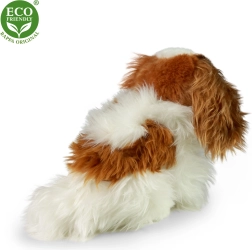 Deze met de hand genaaide pluchen hond is gemaakt van zacht pluche, waardoor hij eruitziet als een echte hond. Het knuffelbeest is voorzien van een ECO-VRIENDELIJKE vulling, wat betekent dat de vulling is gemaakt van gerecyclede PET-flessen. Dit materiaal is veilig, niet te onderscheiden van standaardvulling en volledig getest. Het pluchen hondje is het ideale cadeau voor alle leeftijden en maakt deel uit van de milieuvriendelijke benadering in de productie van speelgoed.