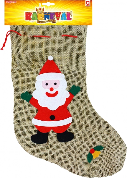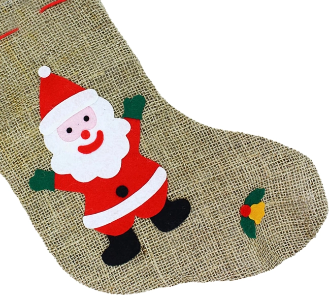 Breng de magie van de feestdagen in huis met deze stijlvolle Sinterklaas-sok van natuurlijke jute. De praktische lus maakt het eenvoudig om hem aan een schouw, deurklink of trapleuning te hangen, terwijl de decoratieve print voor een feestelijke sfeer zorgt. Dankzij de lengte van 38 cm biedt de sok genoeg ruimte voor een royale vulling met zoetigheden, fruit en kleine presentjes.