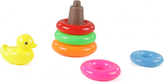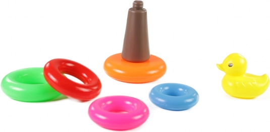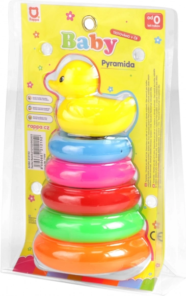Kleurrijke kinderpiramide met eendje is ontworpen om urenlang speelplezier te bieden en tegelijkertijd belangrijke vaardigheden te ontwikkelen. Dit speelgoed is bedoeld voor kinderen vanaf 12 maanden en is een uitstekend hulpmiddel voor het trainen van hand-oogcoördinatie en kleurherkenning.