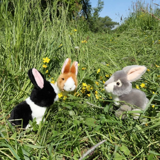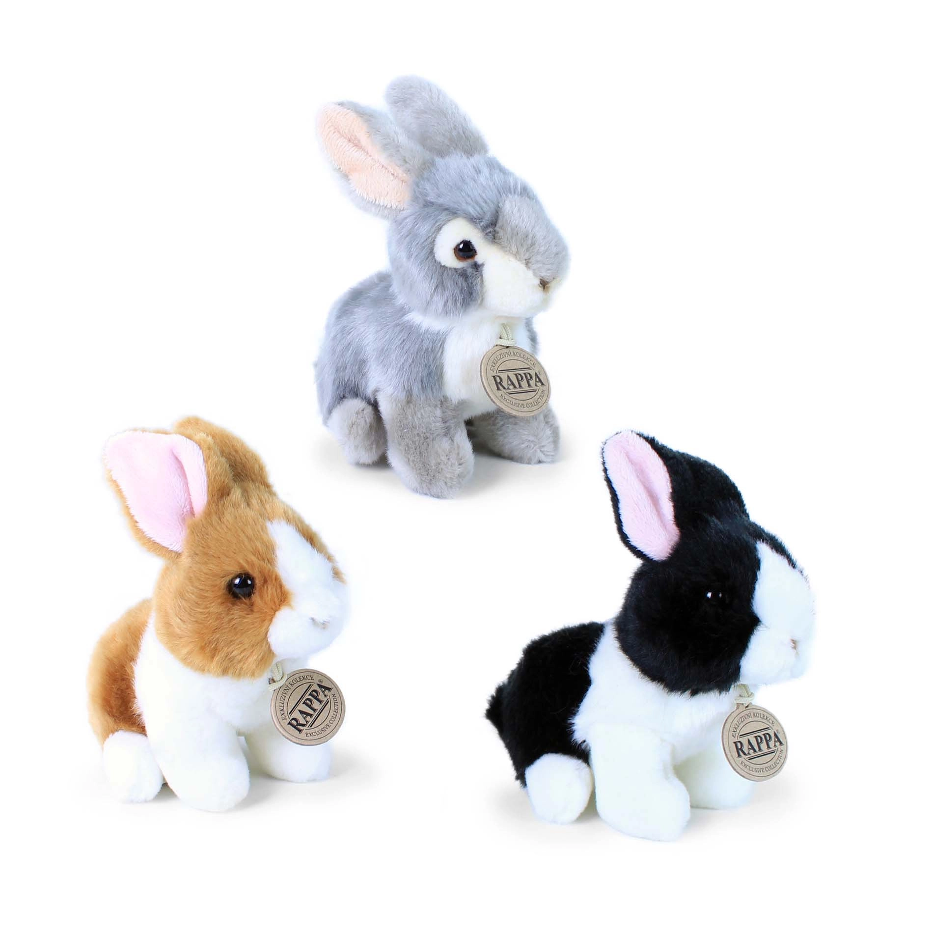 Kies uit grijs, zwart-wit of bruin-wit. Elk konijntje is een heerlijk zacht maatje om mee te spelen en bij in slaap te vallen.