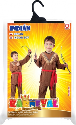 Stijlvolle carnavalsoutfit voor jongens van 6–8 jaar in het bruin met franjes en een rode sjaal. Bevat een bovenstuk met indiaans patroon en een broek. Ideaal voor carnaval, schoolvoorstellingen en kinderfeestjes. Dankzij de opvallende details en comfortabele pasvorm wordt jouw kleine held de ster van het feest en beleeft hij authentiek verkleedplezier.