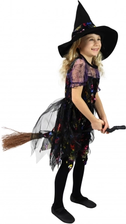 Betoverend kinderkostuum heks voor meisjes van 6–8 jaar (117–128 cm) in zwart‑paarse combinatie met kleurrijke motieven. Inclusief bijpassende puntige hoed, comfortabel textielmateriaal en opvallend Halloween‑design – ideaal voor Halloween, carnaval en verkleedfeestjes. Bezem niet inbegrepen.