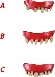 Kies uit drie stijlen tanden die je kostuum plezier en originaliteit geven.