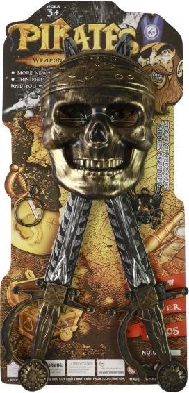Beleef avontuur met de piratenset, die twee zwaarden, een schedelmasker en decoratieve accessoires omvat. Ideaal voor kleine piraten en kostuumliefhebbers.