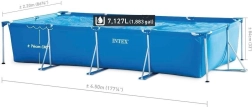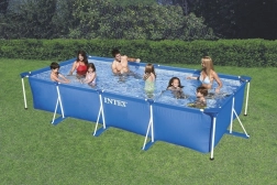 Geniet volop van de zomer met het familiezwembad van INTEX dat in de meeste tuinen past en comfortabel ruimte biedt om te zwemmen en te spelen. Het robuuste stalen frame en de drielaagse PVC-folie met nylonversterking zorgen voor een lange levensduur, scheur- en weerbestendigheid en uitstekende stabiliteit tijdens het baden.