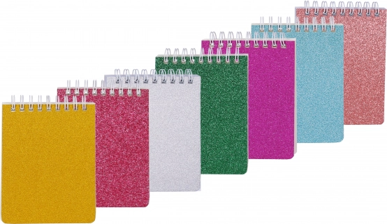 De elegante glitteromslag en de praktische ringbandbinding maken van dit notitieboek een dagelijkse partner voor snelle notities en planning. Het compacte formaat past gemakkelijk in een handtas of rugzak en het gelinieerde papier houdt je aantekeningen overzichtelijk.