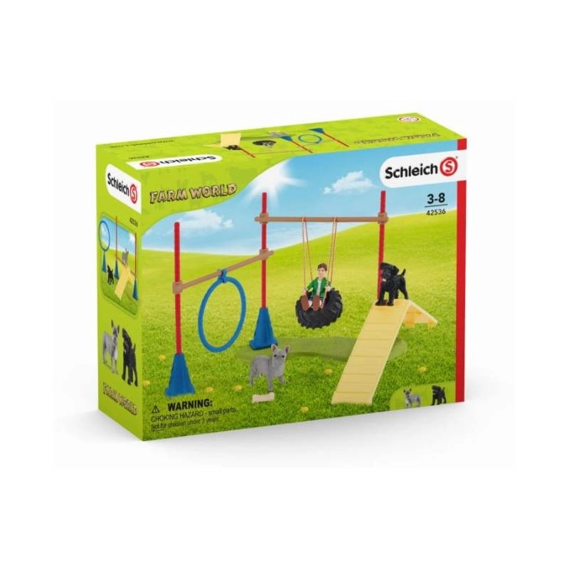 Het hondenpark van Schleich uit de collectie Farm World biedt een leuk agilityparcours met springring, wip-plank en pionnen met lat. Dankzij de realistische details van de figuren stapt een kind moeiteloos de wereld van de boerderij binnen en creëert het eigen verhalen vol vreugde en beweging.
