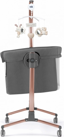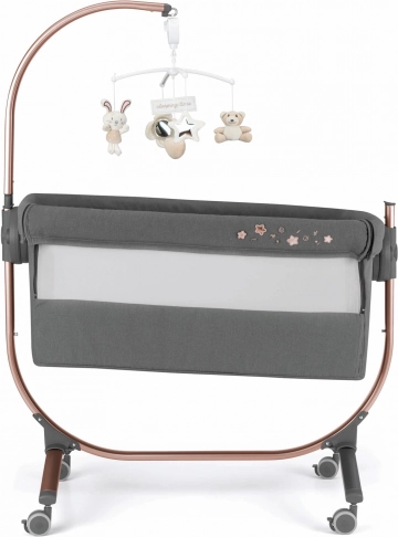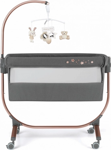 Rits de zijwand eenvoudig open en schuif de wieg dankzij de 16 cm verstelling en 8 hoogte-instellingen naar je bed voor comfortabel nachtelijk voeden en toezicht.