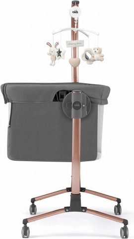De praktische aanschuifwieg Cullami met gratis muziek-mobiel biedt je baby natuurlijke nabijheid, veilige slaap en maximaal comfort voor de ouders. Hij biedt 8 hoogteposities, bedverschuiving van 16 cm voor eenvoudig aanschuiven aan het bed, kantelstand bij reflux en een wiegefunctie voor zacht schommelen. Het stevige metalen frame met 4 wielen (2 met rem) en een afneembare zijwand zorgen voor eenvoudig verplaatsen en een veilige koppeling met het ouderlijk bed.