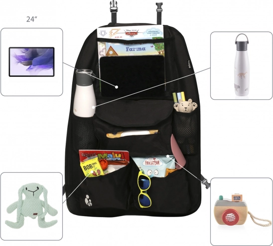 Maak autoritten aangenamer met deze organizer, ontworpen voor maximaal comfort en orde. Hij bevat een beschermende tablethoes die compatibel is met tablets tot 24 cm en stelt uw kinderen in staat om hun favoriete tekenfilms te kijken tijdens de rit.