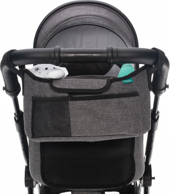 De kinderwagenorganizer PLUS heeft met zijn perfecte formaat voor elke kinderwagen de juiste afmetingen. Hij is zeer ruim en bevat tot wel 6 vakken die voldoen aan de behoeften en eisen van elke moderne moeder. Uiteraard is er een voorvak voor een telefoon en een vakje voor kleine spullen. Aan de achterkant van de organizer bevindt zich een groter vak van mesh voor het opbergen van tijdschriften. Het hoofdvak is zo ontworpen dat er aan de zijkanten flessen geplaatst kunnen worden. De installatie is eenvoudig en snel met behulp van haken met klittenbandsluitingen.