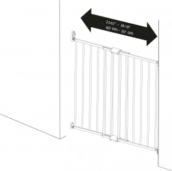 Het Simply-veiligheidshekje is de ideale oplossing voor het beveiligen van doorgangen, gangen en zowel de boven- als onderkant van trappen. Het wordt stevig in de muur gemonteerd met pluggen en schroeven en is dankzij het spreidmechanisme in het midden eenvoudig aan te passen aan een opening van 60 tot 97 cm. Bediening met één hand maakt dagelijks gebruik gemakkelijk voor ouders en verzorgers.