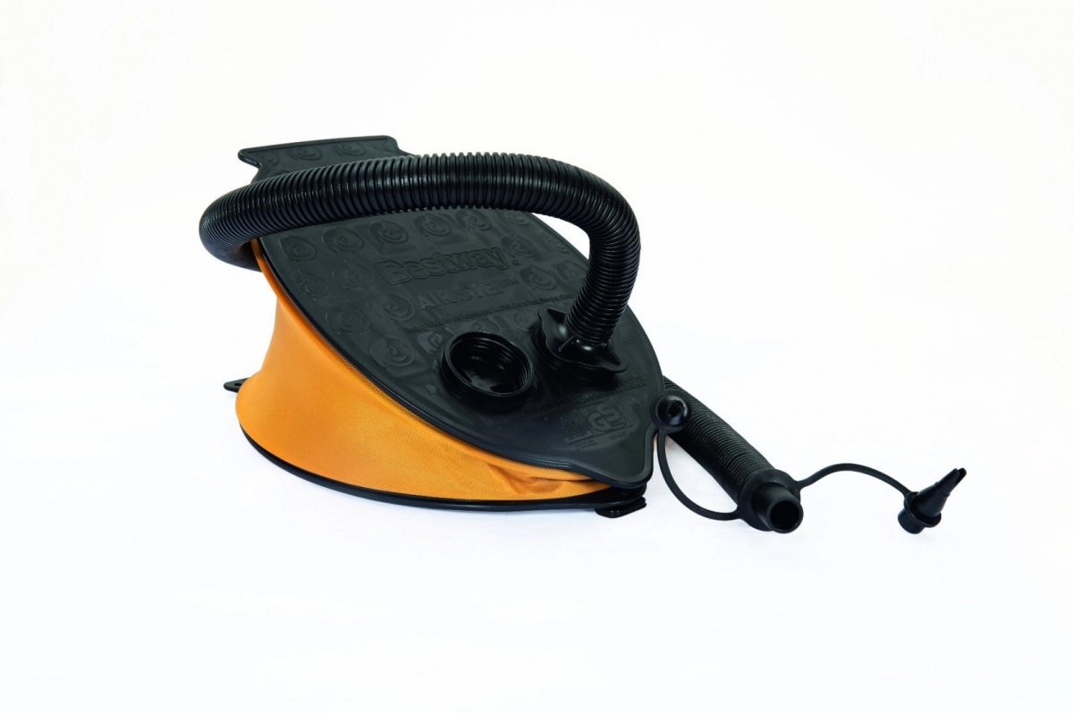 Deze lichte en krachtige voetpomp van Bestway is niet alleen krachtig, maar ook eenvoudig te gebruiken. Het zwart-gele ontwerp met flexibele slang en drie verwisselbare mondstukken zorgt voor comfortabele bediening en efficiënt oppompen van je opblaasspeelgoed of matrassen.