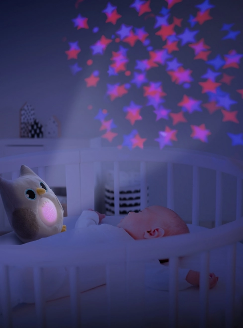 De pluche uil kan een kleurrijke sterrenhemel op het plafond van de kinderkamer projecteren, wat een rustige sfeer creëert om makkelijker in slaap te vallen.
