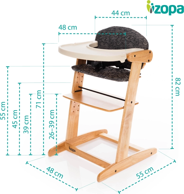 De Zopa Grow Up-stoel is gemaakt van sterk en veerkrachtig hout, wat zorgt voor een lange levensduur en veilig gebruik. Voldoet aan internationale veiligheidsnormen en biedt flexibiliteit tijdens de groei van het kind dankzij de eenvoudig verstelbare componenten.