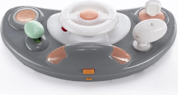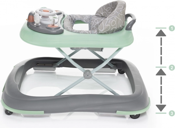 Voor maximaal comfort kan bij het loopstoeltje Fiesta de zithoogte worden versteld in 3 posities. Voor het oefenen van de eerste stapjes is aan de achterzijde van het loopstoeltje Fiesta ook een duwbeugel geplaatst. Voor vermaak zorgt het afneembare interactieve paneel met naast mechanische speeltjes ook melodieën, autogeluiden en lichtjes. Het loopstoeltje Fiesta helpt dus niet alleen bij het oefenen van het lopen, maar vermaakt en stimuleert het kind op een speelse manier en ontwikkelt al zijn zintuigen, inclusief de fijne motoriek.