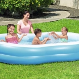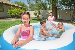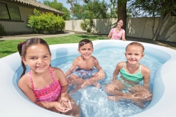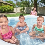 Het opblaasbare BESTWAY-zwembad is een uitstekende keuze voor tuin en erf. Het stevige vinylmateriaal zorgt voor een lange levensduur en weerstand tegen mechanische schade en UV-straling. Twee afzonderlijk opblaasbare ringen vormen stevige en comfortabele wanden die stabiliteit bieden tijdens het spelen van kinderen en het relaxen van volwassenen.