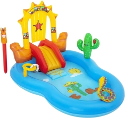 Geniet volop van de zomer met het thematische Bestway Wild West watercentrum. Het kleurrijke design, de veilige constructie en doordachte extra’s garanderen uren actieve buitenpret. De geïntegreerde sprinkler sluit je direct aan op de tuinslang en voor comfortabel glijden zorgt het opblaasbare kussen in de bodem.