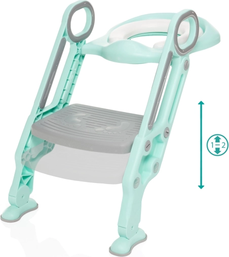 Dankzij de in hoogte verstelbaarheid groeit het trapje met je kind mee totdat het niet meer nodig is. De stevige constructie zorgt ervoor dat je kind zich tijdens het klimmen en zitten veilig voelt. De poten zijn voorzien van een speciale antisliplaag die stabiliteit en steun biedt. Het trapje is bovendien uitgerust met een zachte en comfortabele zitting die als verkleiner voor de gewone wc dient. De anatomische vorm van de zitting, samen met de verhoogde achterzijde, voorkomt ongewenste vervuiling.