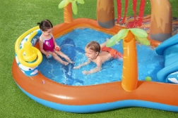 Het opblaasbare waterspeelveld Bestway Vulkaan verandert je tuin in het centrum van zomers plezier. Kinderen genieten van het glijden over de zachte opblaasbare glijbaan, spetteren onder de watersproeier en spelen met ballen en werpelementen. Dankzij het ondiepe badje is het speelcentrum geschikt voor de allerkleinsten, terwijl het duurzame PVC en de aftapplug het gebruik en onderhoud vereenvoudigen.