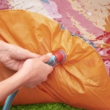 De zachte opblaasbare glijbaan en de vulkaansproeier maken van elke dag een verfrissend avontuur. Sluit simpelweg de tuinslang aan en het plezier kan beginnen.