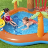 Voor maximaal comfort ontbreekt het niet aan een afneembaar peuterbadje, een praktische aftapplug en een reparatiepatch in de verpakking. Het kleurrijke, tropische design nodigt uit tot ontdekken en stimuleert actieve beweging en creatief spel.