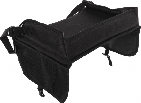 Dankzij de verstelbare bevestigingsriem bevestigt u het blad eenvoudig op de meeste kinderautostoelen met hoge rugleuning. De slijtvaste stof is makkelijk afneembaar en daarom ook geschikt als snackplateau. De zwarte uitvoering is universeel en oogt schoon en elegant.
