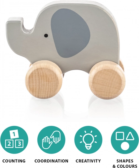 Een schattige houten olifant op wieltjes is een licht en veilig speeltje voor de allerkleinsten. Het ondersteunt de fijne motoriek, bewegingcoördinatie en creativiteit. Gemaakt van natuurlijk hout... Meer tonen