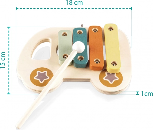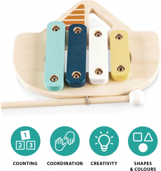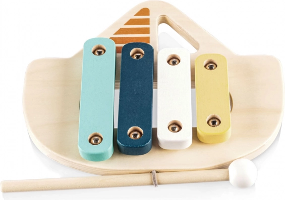 De xylofoon is gemaakt van natuurlijk hout en op waterbasis gemaakte verf, wat veiligheid voor kinderen en milieuvriendelijkheid garandeert. Dankzij dit speelgoed leren kinderen de eerste tonen en melodieën herkennen, wat een geweldige hulp is bij het ontwikkelen van hun gevoel voor ritme.