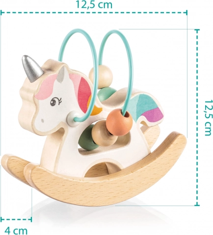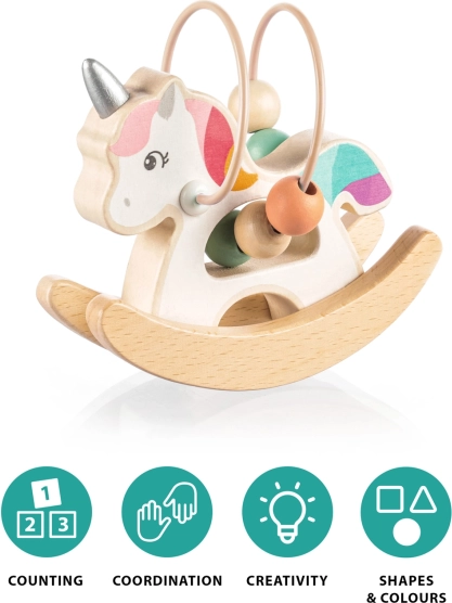 De houten activiteiten-eenhoorn is ontworpen om te vermaken en tegelijk te leren. Kinderen kunnen dit compacte speelgoed eenvoudig vastpakken, waardoor het een ideale metgezel is voor hun avonturen. Naast het klassieke schommelen biedt de eenhoorn ook interactieve elementen die coördinatie en creativiteit stimuleren.