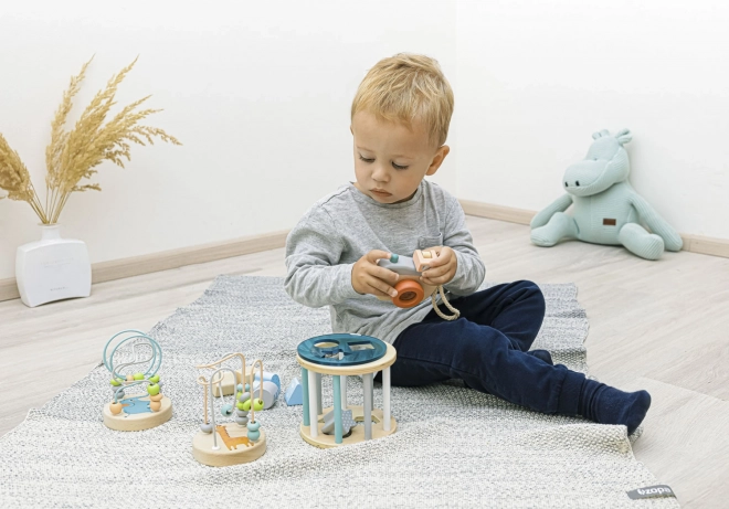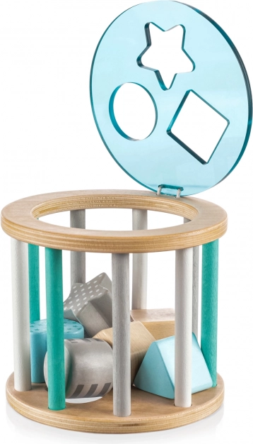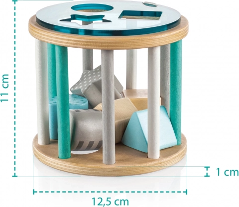 De houten actieve vormensorteerder biedt kinderen een interactieve manier om vormen en kleuren te leren herkennen. Het speelgoed is gemaakt van hoogwaardig natuurlijk hout en gebruikt watergedragen verf, wat veiligheid voor kinderen garandeert. De sorteertrommel bestaat uit een cilinder met meerdere openingen waarin blokjes van verschillende vormen en kleuren worden gestopt.