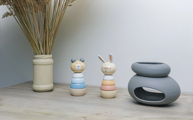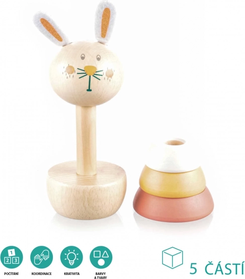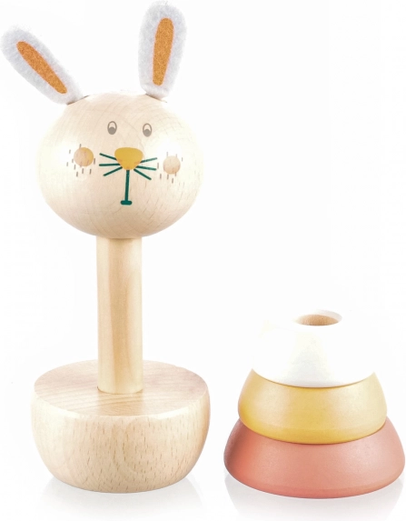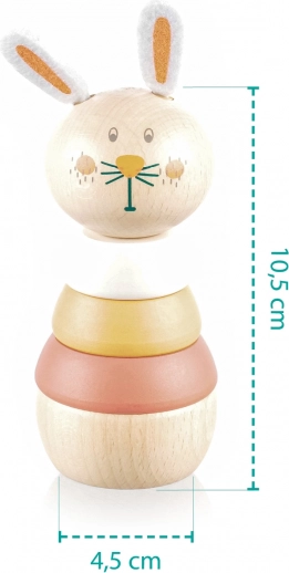 Houd je kind urenlang bezig met dit prachtige stapelspeelgoed in de vorm van een konijntje. Kinderen genieten van het spelen met houten ringen die kunnen worden uit elkaar gehaald en opnieuw gestapeld. Het schattige konijntje-ontwerp trekt de aandacht en stimuleert spelenderwijs de ontwikkeling van motoriek en ruimtelijk denken.