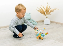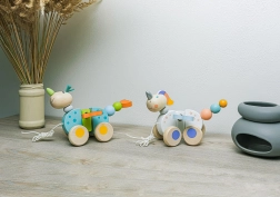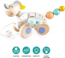 De houten trekdier Eenhoorn is een geweldige metgezel voor kinderen bij hun eerste stapjes. Dankzij het eenvoudige mechanisme fladderen de vleugels en staart van de eenhoorn tijdens het lopen, wat kinderen urenlang vermaakt.