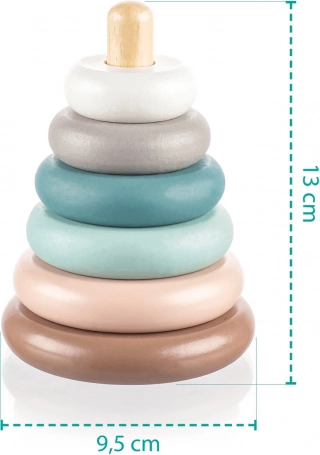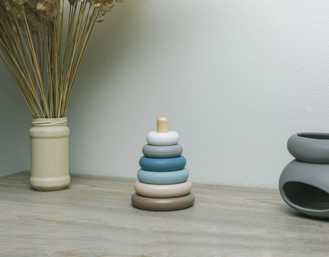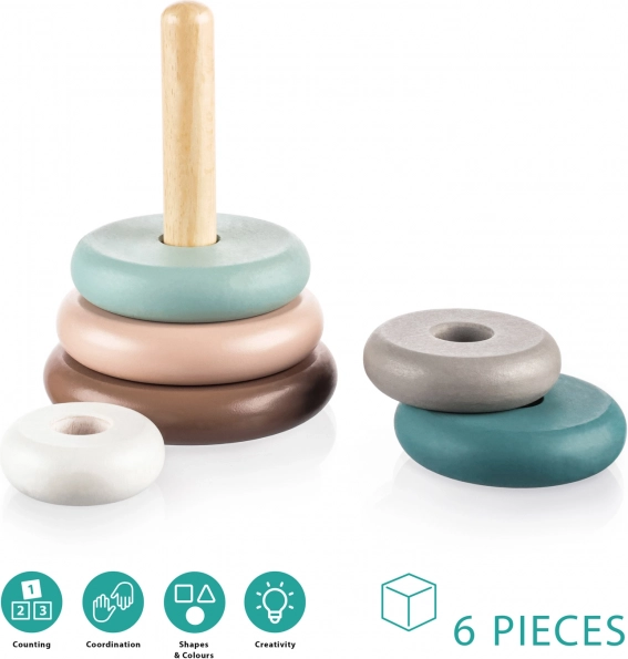 Dankzij de houten stapelringen kunnen kinderen basis motorische vaardigheden ontwikkelen en zich tegelijk vermaken.
