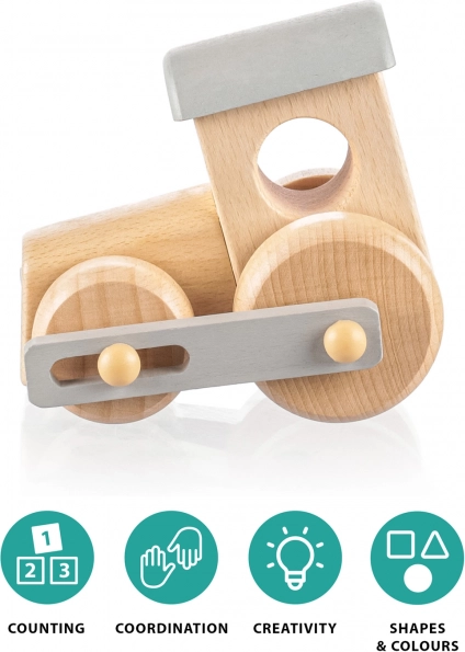 Een kleurrijke houten locomotief waarmee een kind zich in een oogwenk in een machinist verandert, is een onmisbaar onderdeel van de kindertijd. Hij is gemaakt van zorgvuldig bewerkt natuurlijk beukenhout en afgewerkt met watergedragen verf. Bij klassiek rijden helpt hij kinderen de motorische vaardigheden van handen en polsen te ontwikkelen.