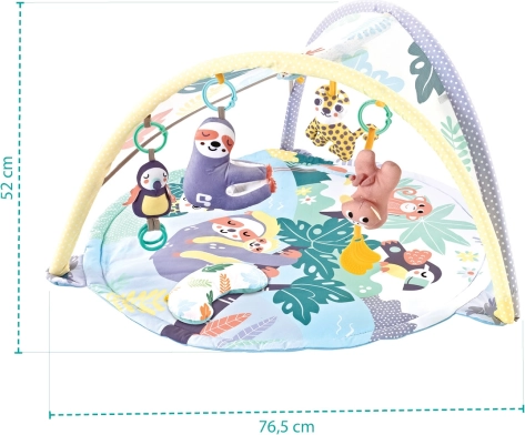 Dit zachte en veilige Town Square-speelkleed is ontworpen voor zowel plezier als ontwikkeling vanaf de eerste dagen. De hangspeeltjes moedigen baby’s aan om te reiken en vast te pakken, waardoor spieren op natuurlijke wijze worden versterkt en de oog-handcoördinatie zich ontwikkelt. Een van de hangspeeltjes speelt een aangename melodie die helpt om je baby te kalmeren.