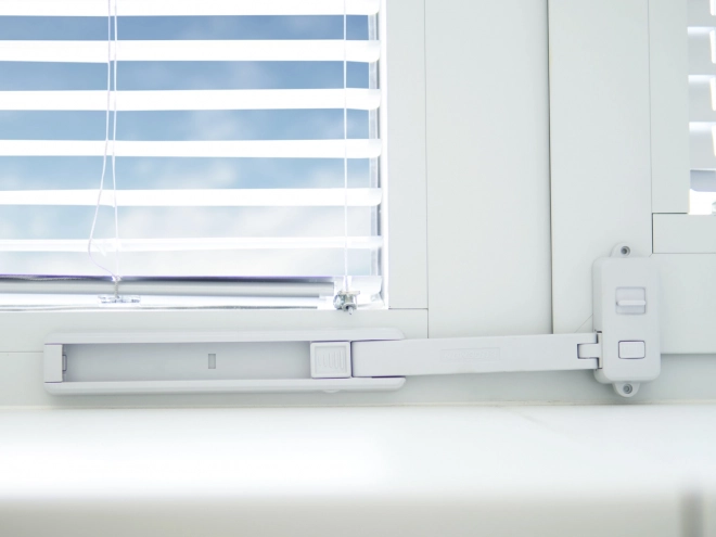 Betrouwbare beveiliging van ramen en schuifdeuren dankzij ons witte vergrendelingsmechanisme. Dit product is ontworpen om ongewenst openen te voorkomen en je kinderen te beschermen tegen letsel: