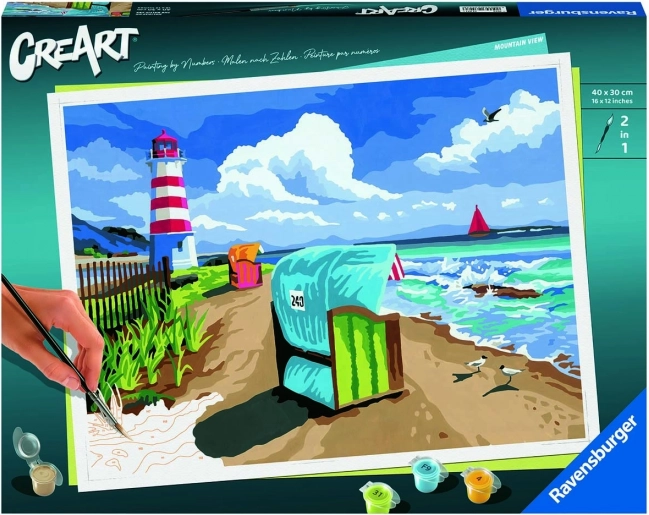 CreArt (Premium Series B) – vakantie aan de Oostzee is een ideale keuze voor jonge en beginnende kunstenaars die de schoonheid van de kust willen ontdekken. Dankzij de voorbedrukte vlakken en genummerde verf duik je moeiteloos in het creatieproces en maak je stap voor stap een indrukwekkend schilderij van de zeekust.