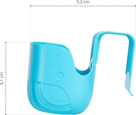 Praktische drankhouder met haak. Kan worden opgehangen aan een kinderwagen, autostoeltje, ledikant of andere plekken (maximale breedte 4 cm). In de houder past een flesje met een maximale diameter van 8 cm.