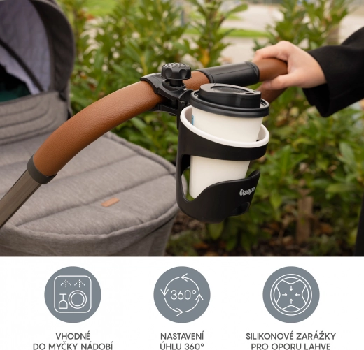 Geniet van wandelingen of fietstochten met je handen vrij – de universele bekerhouder houdt koffie, reisbeker of babyfles veilig op z’n plek. De draaikoppeling laat je de ideale hoek instellen om morsen te voorkomen, terwijl de robuuste klem met antislip-inleg stevig en zonder gewiebel op de kinderwagenbeugel of het fietsstuur blijft zitten.