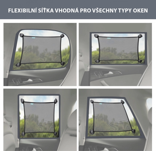 Dankzij de zuignappen op het raam kan het flexibele elastische gaas vrij worden gebruikt op alle ramen in de auto en precies daar worden geplaatst waar het nodig is. Het beschermende UV-gaas is scheurbestendig. Door zijn elasticiteit kan het zijn formaat bijna verdubbelen.