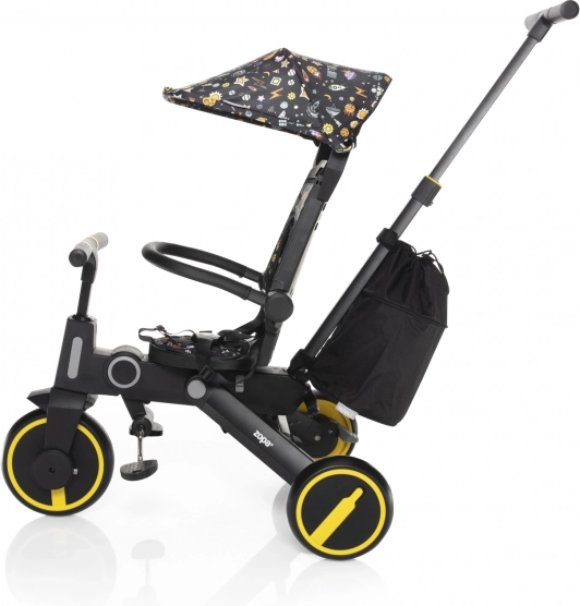 De driewieler is een comfortabeler alternatief voor de kinderwagen en tegelijk een tussenstap naar loopfietsen en fietsen. Dankzij de in hoogte verstelbare duwstang en de functie om het stuur uit te schakelen, vervangt hij de kinderwagen volledig en heeft het kind tijdens het rijden meer plezier. De afneembare trappers kunnen worden gebruikt als pedalen wanneer het kind de driewieler zelf bestuurt, of voor kleinere kinderen als voetensteun. Voor extra comfort zorgen de zitting en de rugleuning, die beide zijn voorzien van een kussen dat afneembaar is voor gemakkelijker reinigen.