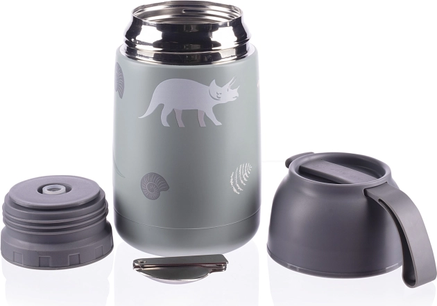 Er is een slimme inklapbare lepel inbegrepen die perfect in de sluiting past, zodat je je kind overal een warme pap of soep kunt geven. De dop van de thermos kan worden gebruikt als bekertje of schaaltje. De bovenste sluiting is voorzien van een veiligheidsventiel dat de overtollige lucht die druk veroorzaakt, vrijlaat. Door het vrijlaten van de samengeperste lucht kan de container eenvoudig worden geopend en wordt verbranding door stoom voorkomen.