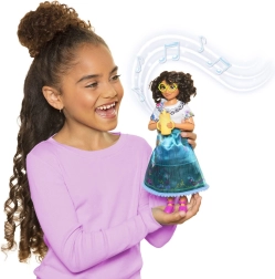 De zingende pop Mirabel brengt vrolijkheid, muziek en de kleurrijke wereld van Encanto in huis. Gekleed in een opvallende jurk met bloemenprint en met haar karakteristieke bril is ze perfect voor het naspelen van favoriete scènes én het verzinnen van nieuwe verhalen. Bij het indrukken klinkt de signature song, die meteen een betoverende sfeer oproept.