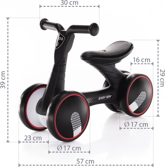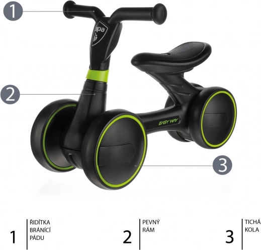 De Easyway loopfiets is een nieuwigheid voor het plezier van uw kinderen vanaf 18 maanden. Het sportieve design is gebaseerd op een robuuste constructie met een stevig frame. Uiteraard zijn er wieltjes met “silent wheels”-technologie voor een stille en geruisloze rit. U kunt kiezen uit meerdere kleurvarianten.