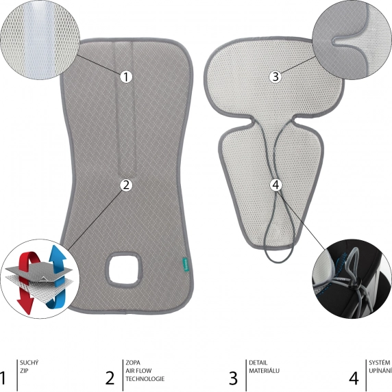 De ZOPA Breeze-inleg voor groep 2/3 is ontwikkeld in samenwerking met ouders om de meest voorkomende problemen van zomerse autoritten op te lossen. De unieke 3D-structuur en Air Flow-technologie laten lucht circuleren tussen het kind en de stoel, zodat het kind minder zweet en zich comfortabel voelt, ook tijdens langere ritten.